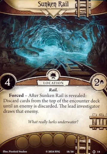 Forced - After Sunken Rail is revealed: Discard cards from the top of the encounter deck until an enemy is discarded. The lead investigator draws that enemy.